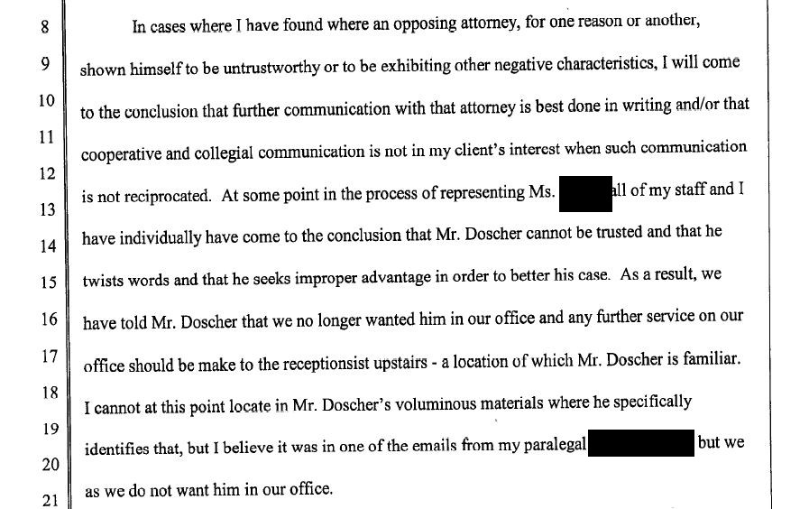 November 29, 2018 Here's the more extended (but not consecutive and complete) version of one of the quotes from yesterday's entry. This attorney has become my model for dealings with Doscher. |