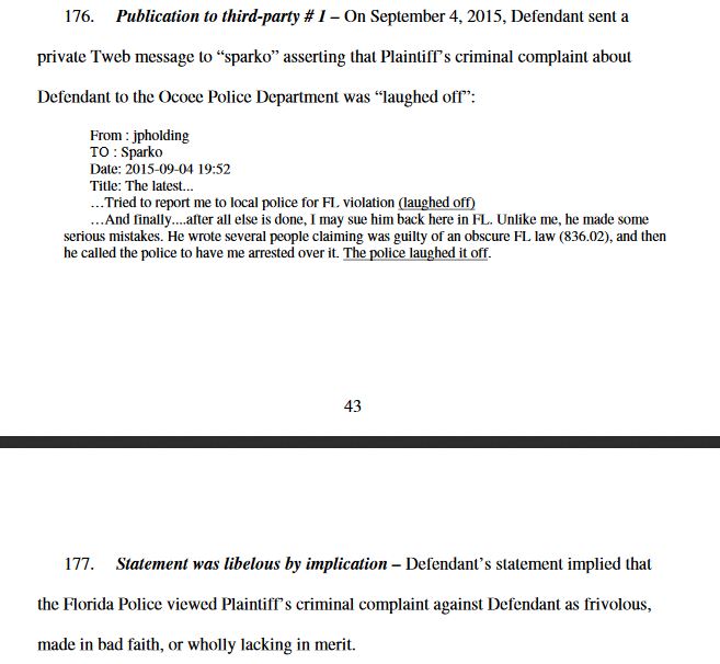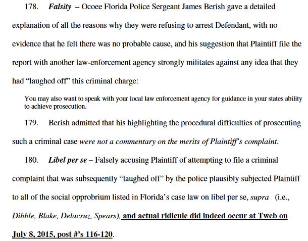 DECEMBER 18, 2018 Today we have a snapshot of one of Doscher's charges in the Florida lawsuit. He listed more than 20 charges, and in the last three, he included the same claim about ridicule occuring. The obvious question it would have been interesting to see him answer: How do you get "ridiculed" in July 2015 for something that happened in September or October 2015? |